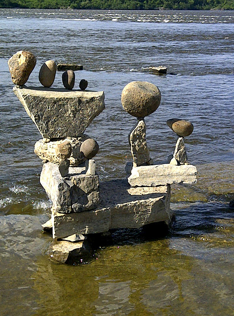 Professionally and competently led, we ended our unforgettable two hour tour with Dennis Doermer at the Ottawa River and were amazed by the artist-created rock sculptures which stretched from the shore well into the river.